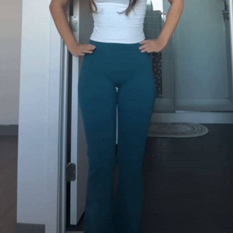 Designed to flatter without squeezing. The high-rise smooths your waist while the flare lengthens your legs.